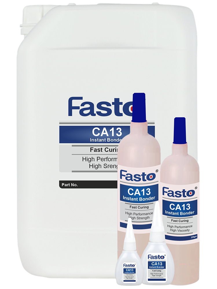 Fasto CA13 is a Low Viscosity, High Performance, High Strength, Very Fast Curing, Specially Formulated Modified Ethyl Cyanoacrylate Adhesive. Fasto CA13 is suitable for bonding difficult-to-bond substrates like leather, etc. Fasto CA13 offers Very High-Speed curing for substrates like rubber & plastics.