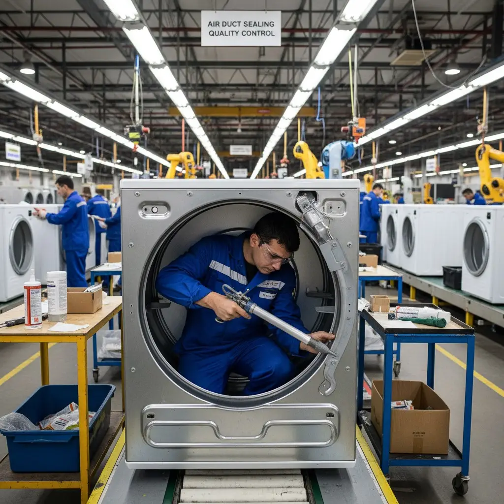 Sealants are used around lint filters and ducts to ensure air-tight function.