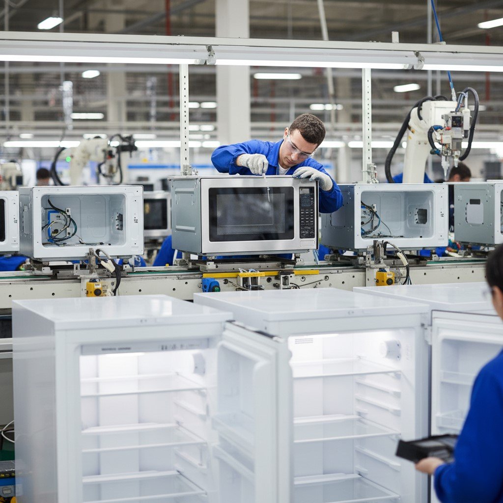 Adhesives fix control knobs, digital displays, and trim parts securely.