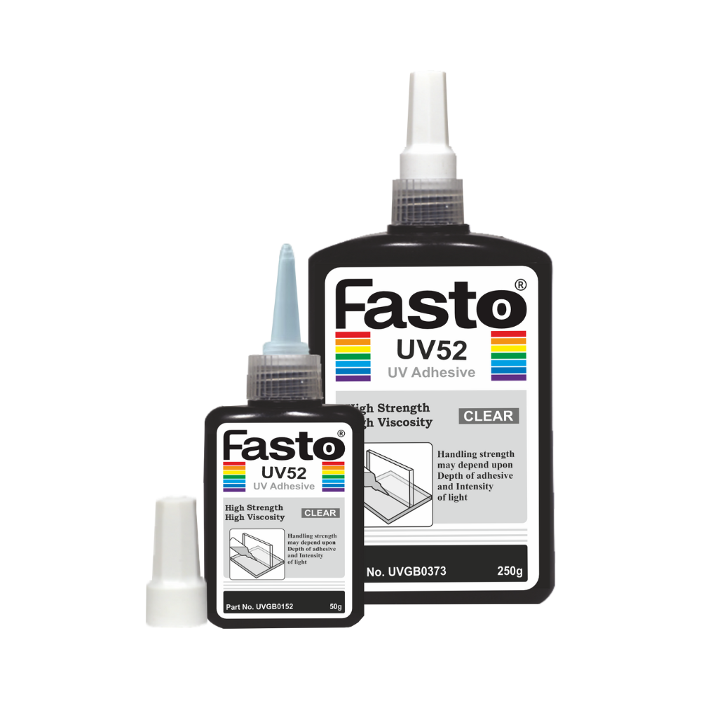 Designed for applications requiring fast setting, high strength, and resistance to water and solvents, Fasto UV52 is widely used across industrial, pharmaceutical, signage, furniture, jewellery, and precision assembly sectors.