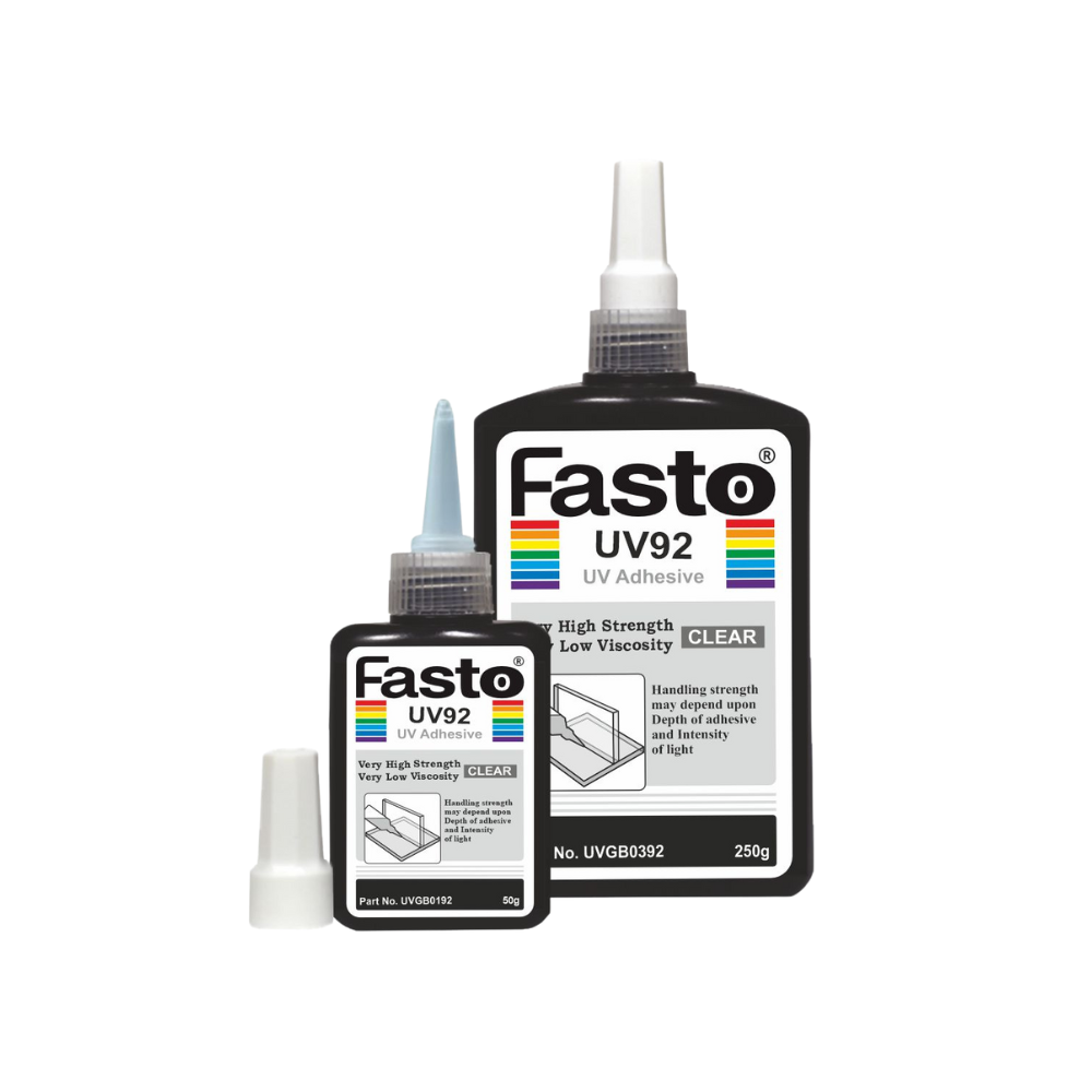 Fasto UV92 is a single-component, very low viscosity, UV-curable adhesive engineered to deliver super high strength, transparent, and flexible bonds when exposed to UV light. It is specially formulated for glass-to-glass and glass-to-metal bonding, where optical clarity, non-yellowing performance, and precision assembly are essential.
